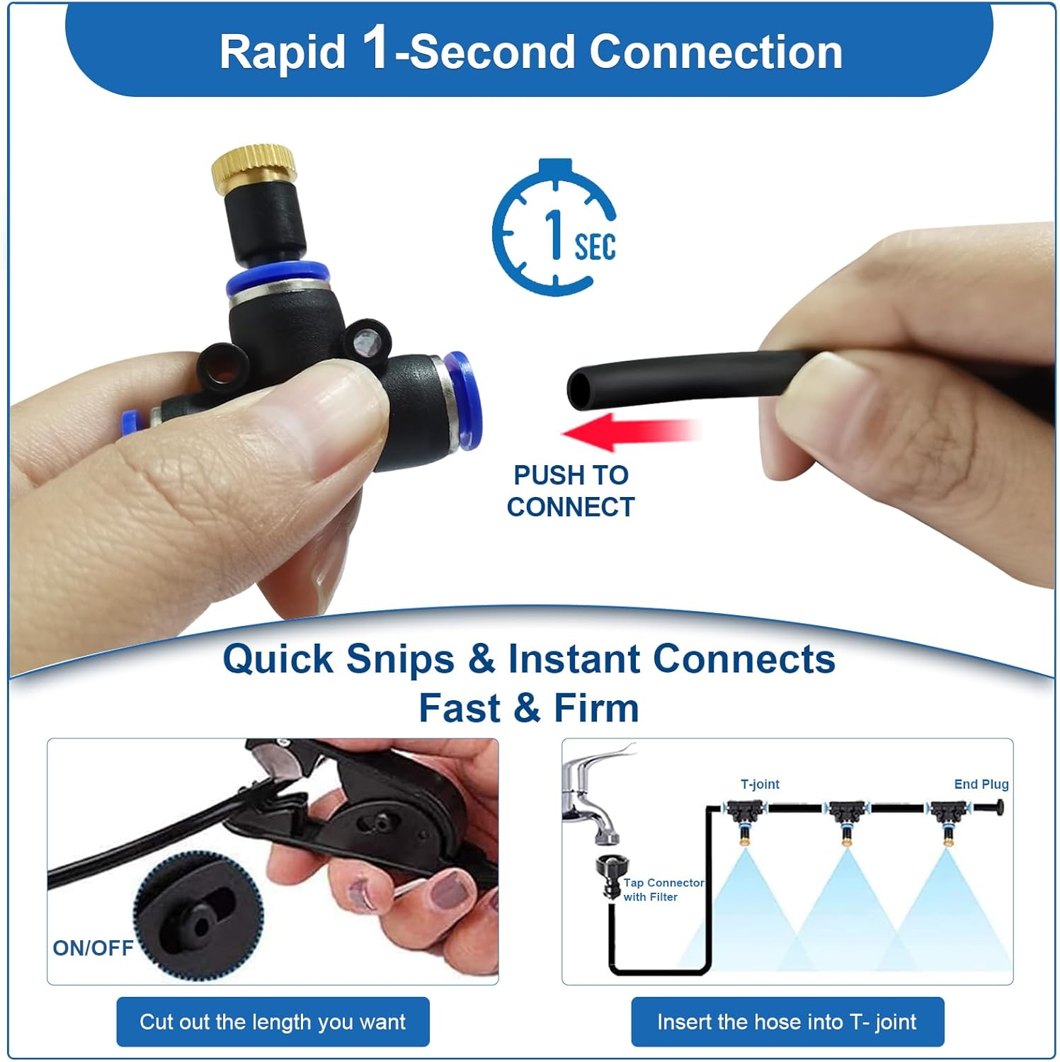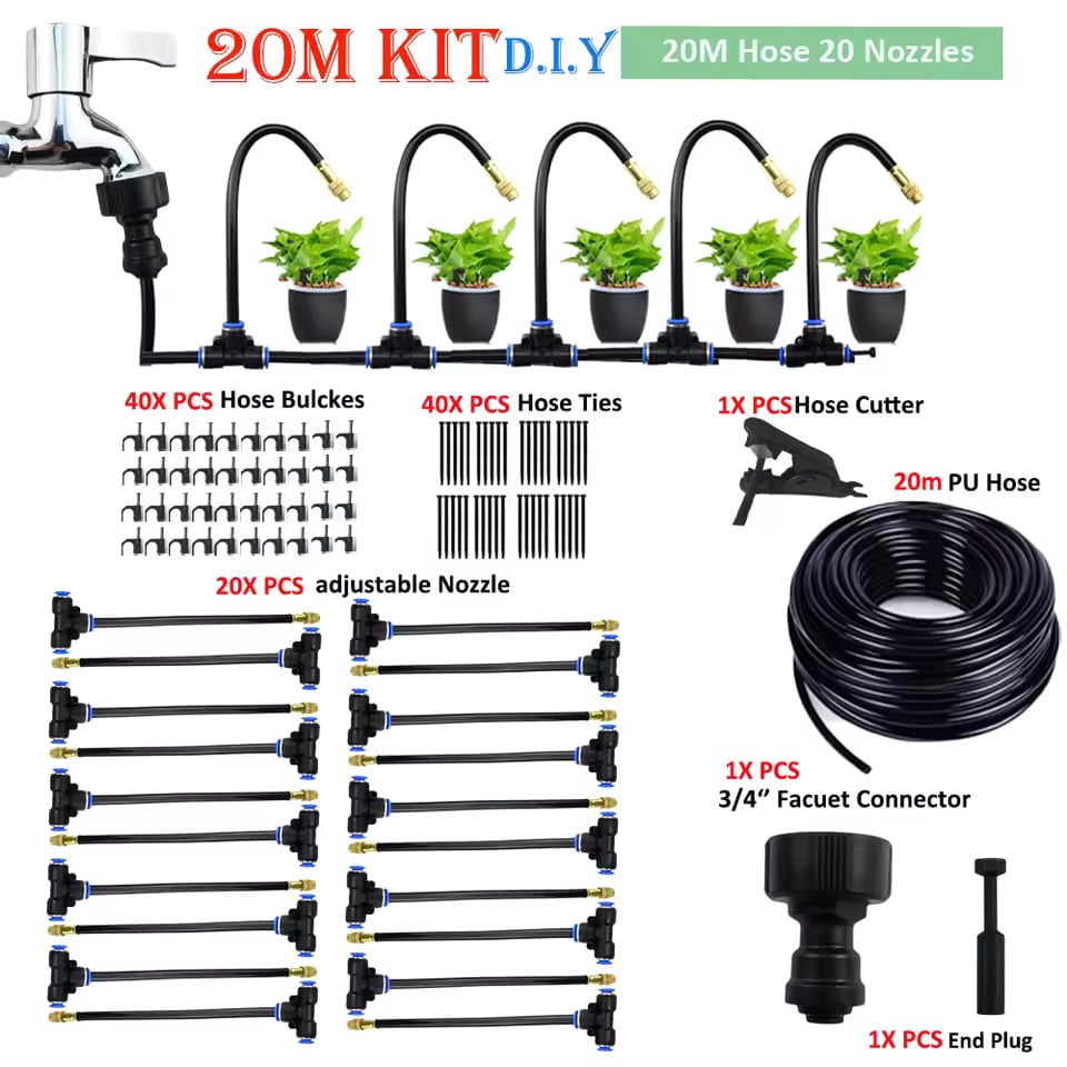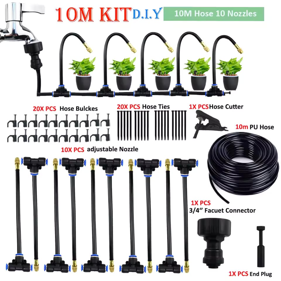 Simple installation without digging or plumbing skills,simply insert the fittings and sprayers, you can begin watering your plants instantly.