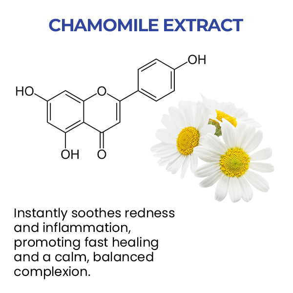 Chamomile Extract is a soothing and nourishing natural ingredient known for its anti-inflammatory and skin-brightening properties. It works by calming irritated skin and reducing redness while targeting dark spots and blemishes. Rich in antioxidants, Chamomile Extract helps to protect the skin from environmental damage and promotes an even-toned complexion. Its gentle nature ensures that imperfections are addressed effectively without causing irritation, leaving your skin refreshed, radiant, and flawlessly smooth.