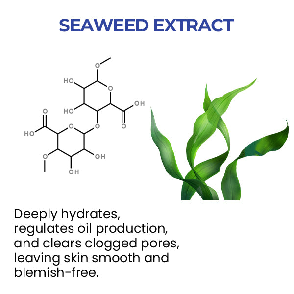 Seaweed Extract is a nutrient-rich natural ingredient celebrated for its detoxifying and rejuvenating properties. Packed with vitamins, minerals, and antioxidants, it helps to deeply cleanse the skin, reduce inflammation, and promote cellular regeneration. Seaweed Extract works by improving skin elasticity and targeting imperfections such as dark spots, blemishes, and uneven texture. Its hydrating and soothing qualities ensure that your skin feels soft, supple, and revitalized, while imperfections are diminished, leaving a healthier and more radiant complexion.